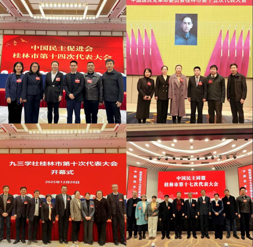 为深入贯彻落实新时代党的统一战线工作要求,密切校地联系。近日,党委统战部常务副部长(正处长级)、机关党委书记龙媛,党委统战部副部长、机关党委副书记张鲜艳等部门工作人员,先后应邀出席了民进、民革、九三学社、民盟、民建、农工党等民主党派桂林市委员会的代表大会开幕式。